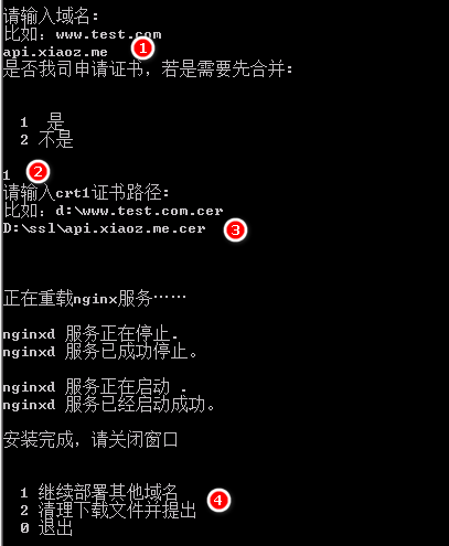 再次运行win-ssl.bat这个脚本,输入建站助手上绑定的域名api.xiaoz.me